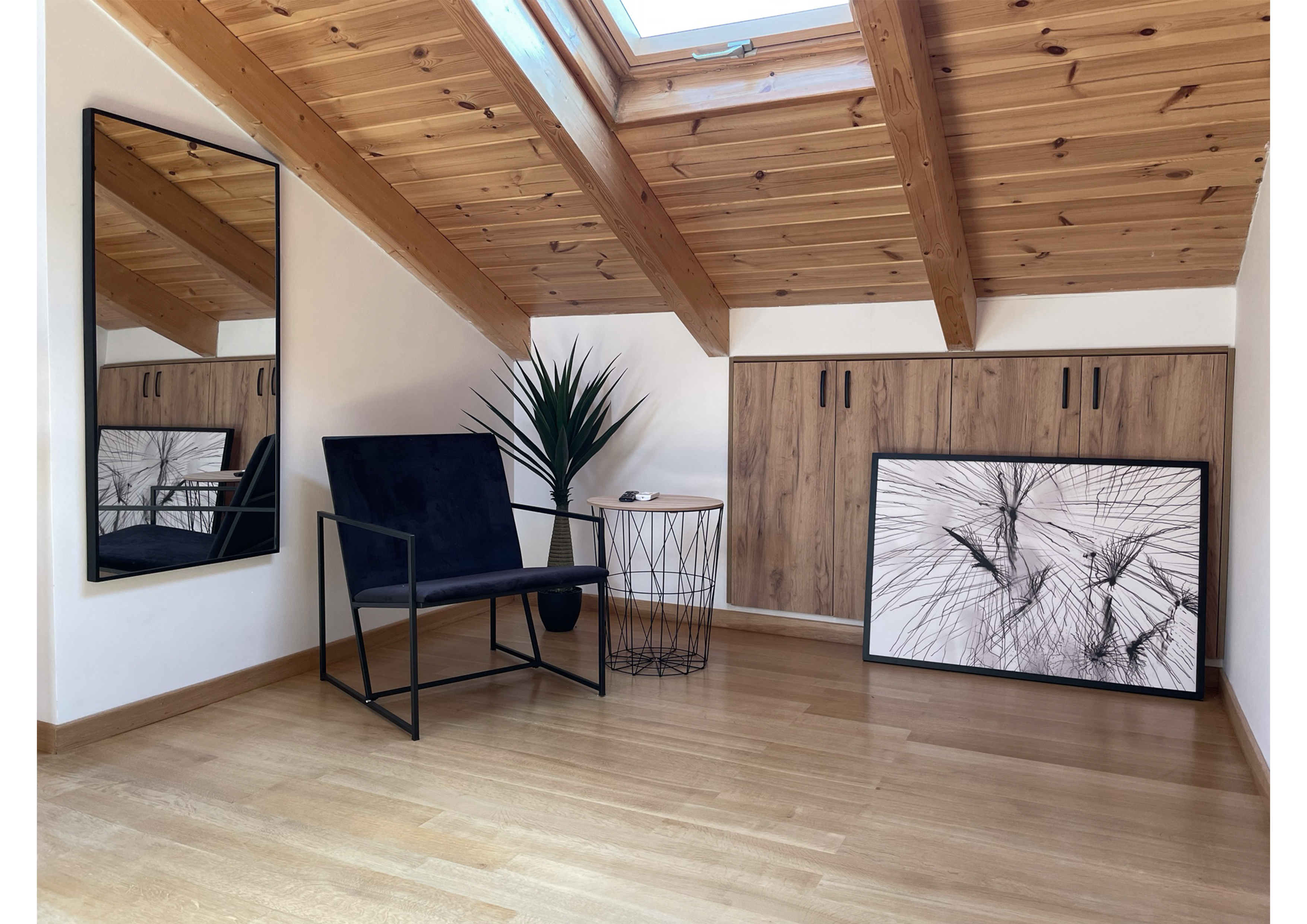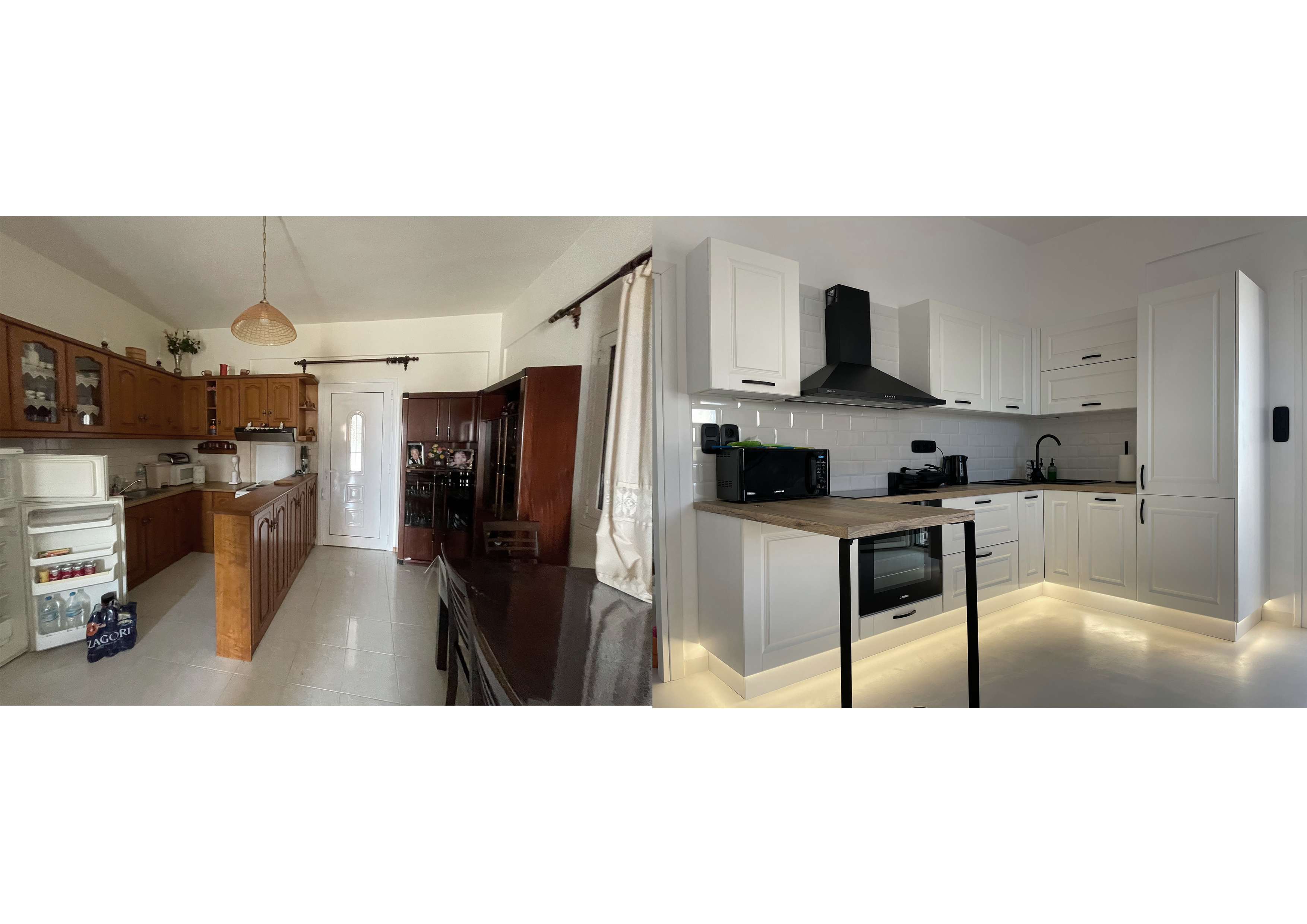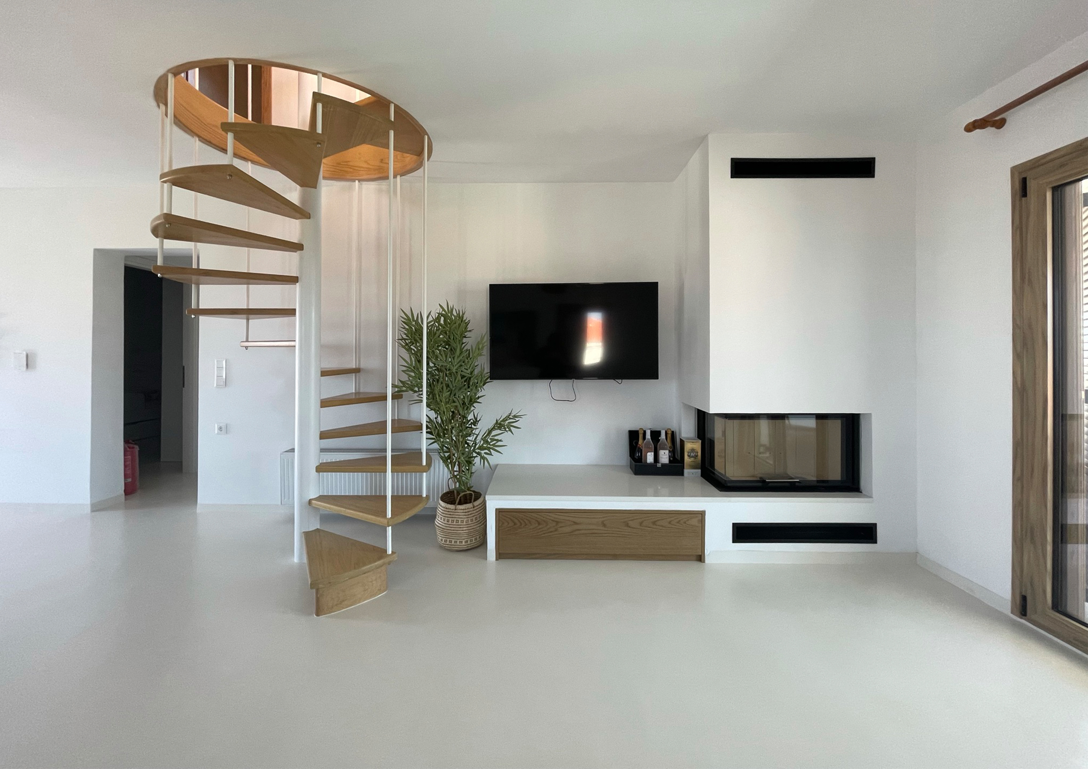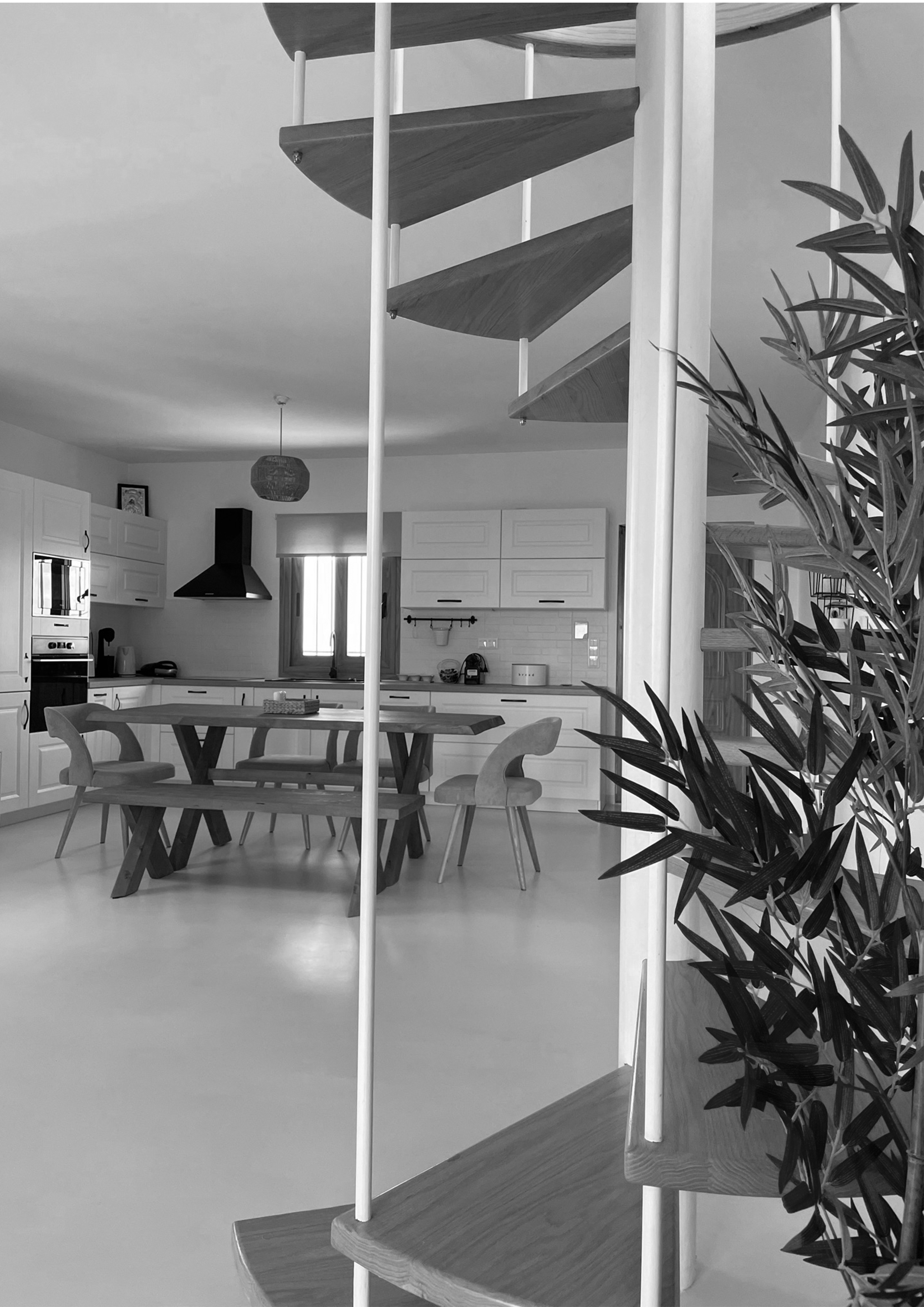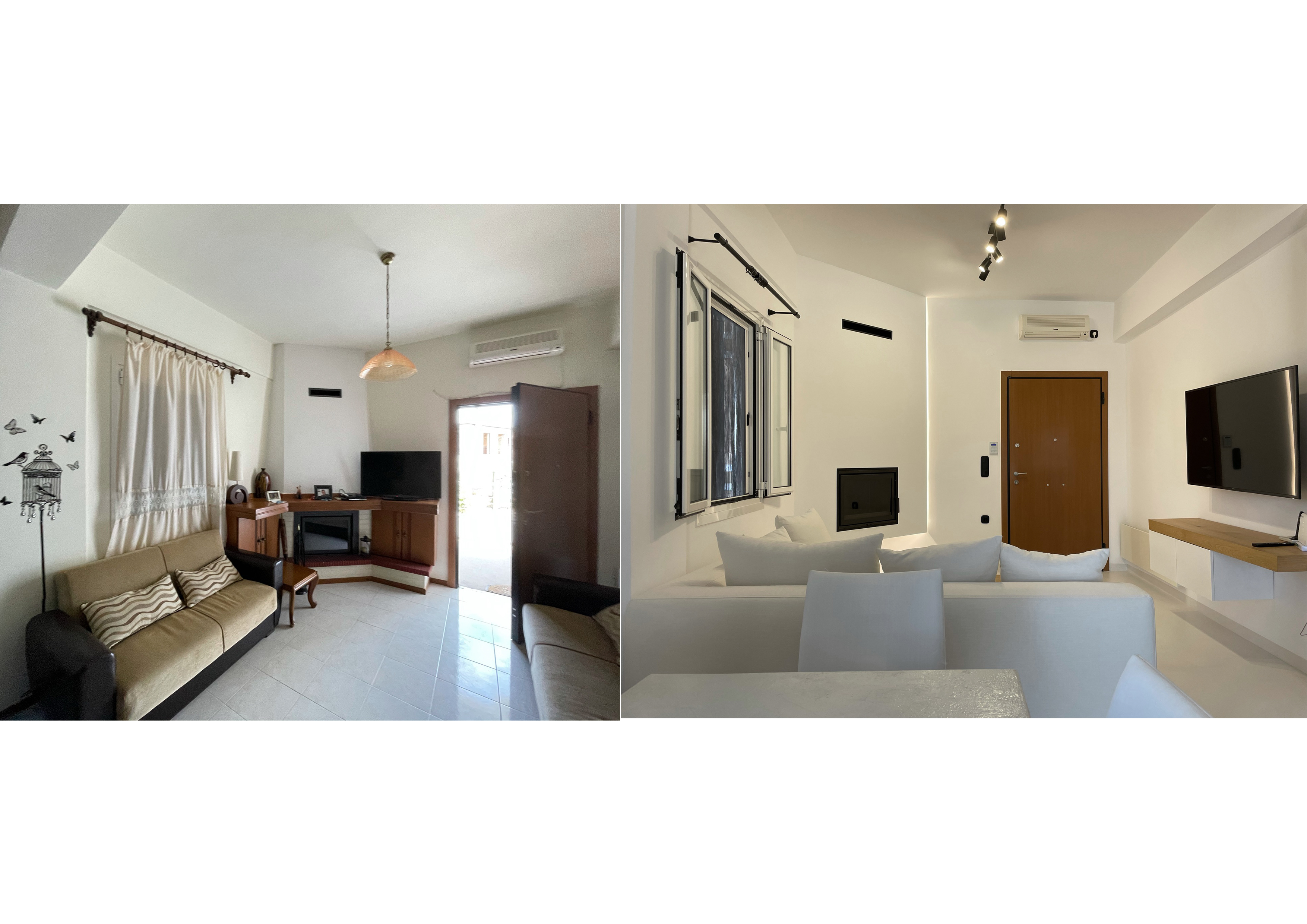Ο σχεδιασμός αφορά την ανακαίνιση ενός υφιστάμενου ισογείου διαμερίσματος, την αρχιτεκτονική σύνθεση και την κατασκευή του διαμερίσματος του α’ ορόφου και της σοφίτας, βάσει των αρχιτεκτονικών διατάξεων και περιορισμών που επιβάλλει η αρχιτεκτονική υπηρεσία της περιοχής, όπως επίσης τη διαμόρφωση του υπαίθριου χώρου και την κατασκευή χώρου φιλοξενίας και κολυμβητικής δεξαμενής η οποία ‘’αιωρείται’’ στο κενό.